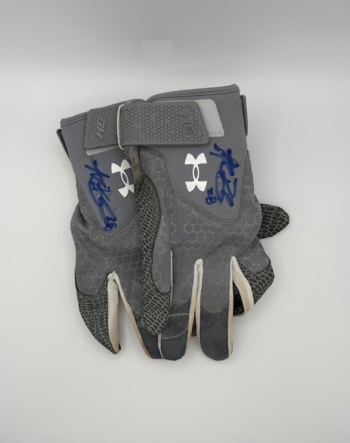 For your $225 donation the Alec Bohm Foundation will send you this pair of authentic Gray and Red Under Armour Batting Gloves. These gloves are autographed by Alec and are “Player Worn”