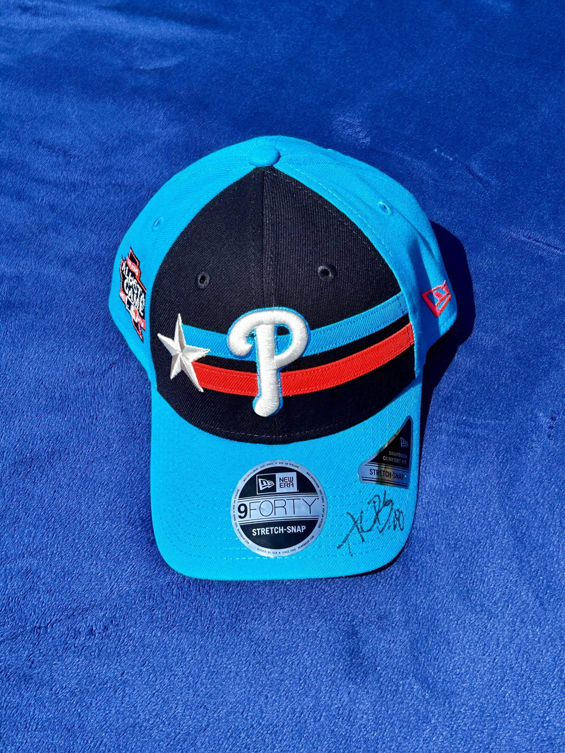 For your donation the Alec Bohm Foundation will send you this autographed “player worn” New Era Navy 2024 MLB All-Star Cap
