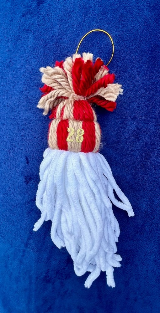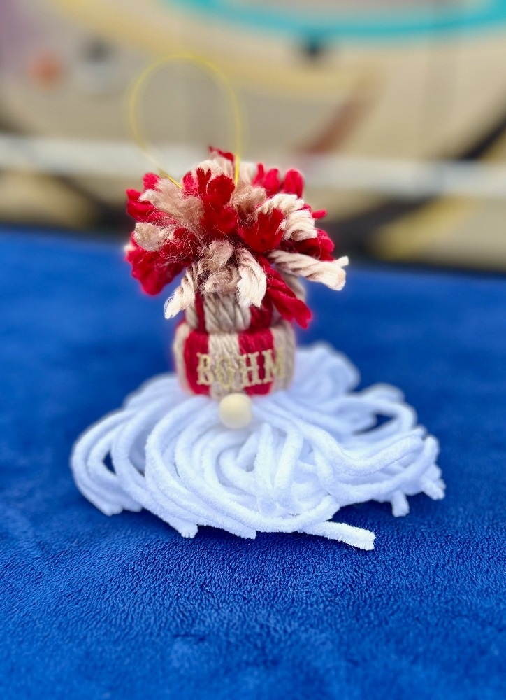 For your $12 donation the Alec Bohm Foundation will send you this all-new handmade hanging yarn “Bohm-28” Christmas Ornament.