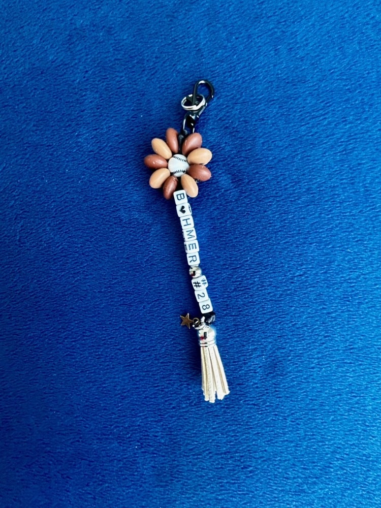 For your $9 donation the Alec Bohm Foundation will send you this Bohmer # 28 beaded keychain.