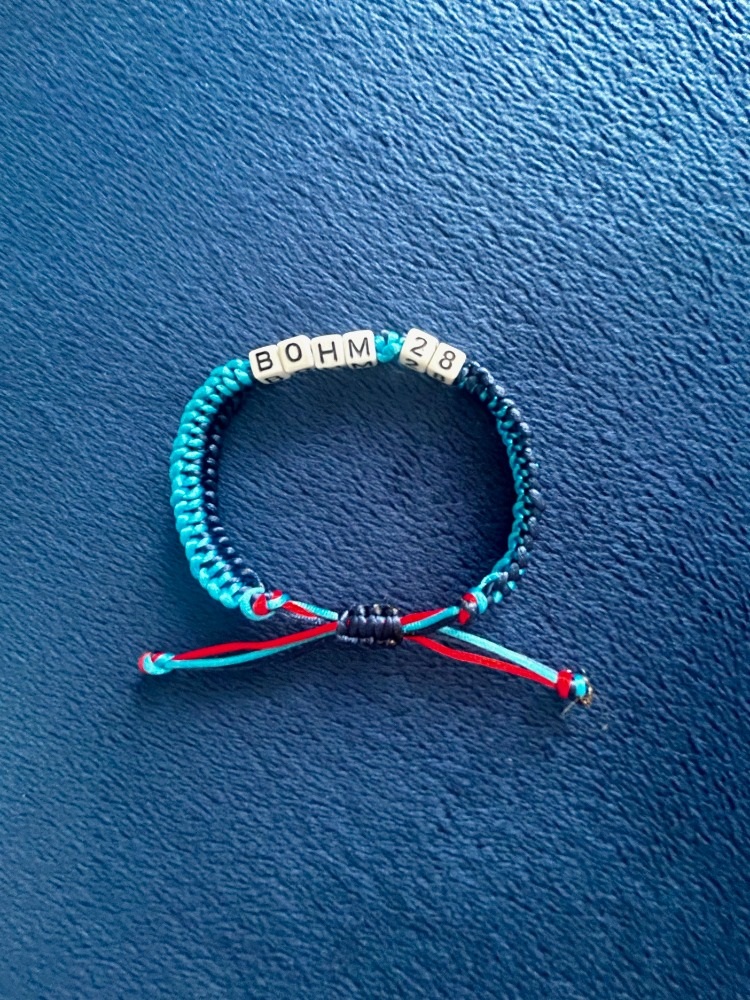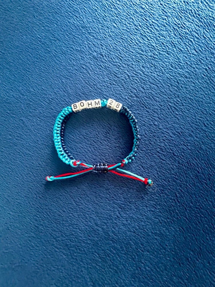For your $18 donation the Alec Bohm Foundation will send you this great looking “Bohm 28” fashioned City Connect colored braided bracelet.