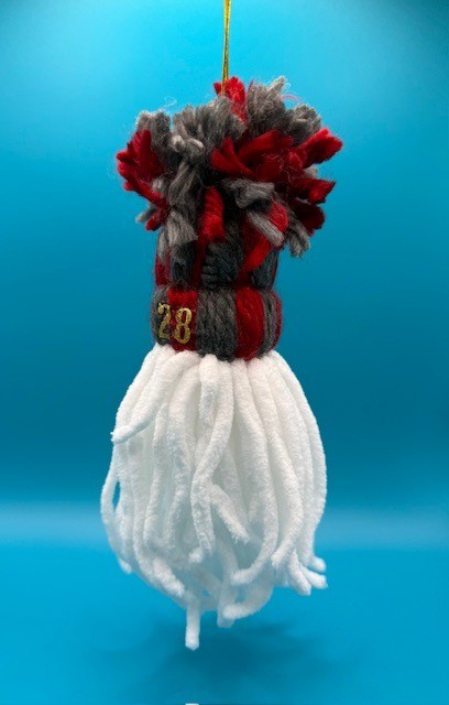For your $8.00 donation the Alec Bohm Foundation will send you this handmade hanging yarn Bohm 28 Christmas Ornament. Ornament is approximately 10 inches in overall length.